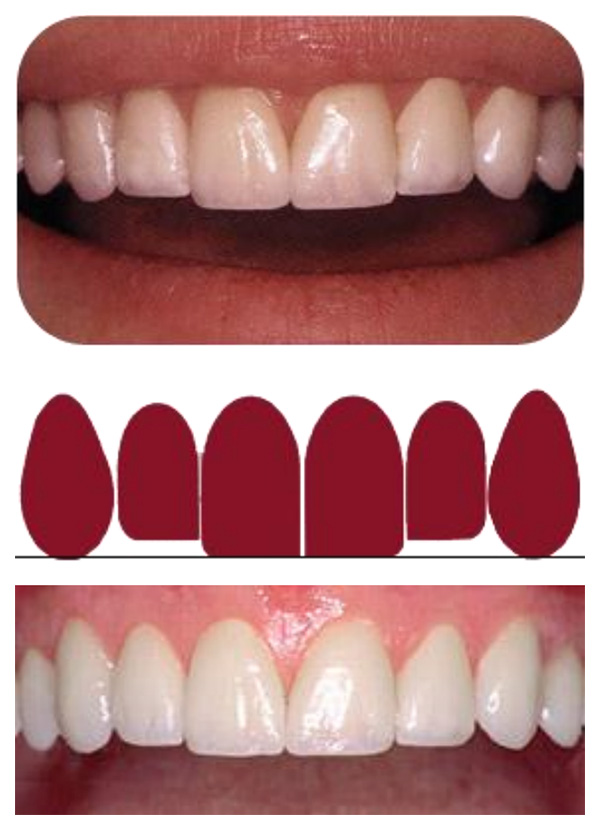 The rounded edges to all the teeth in the Oval design make this smile perfect for a shorter face with curved and less angular features. The cuspids are lengthened to smooth out the proportions and create a soft appearance. This smile creates a mood of happiness, gentleness and warmth.