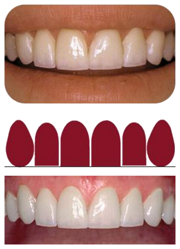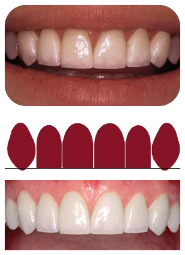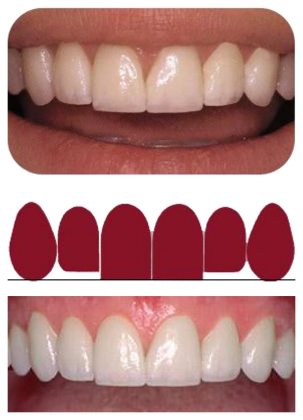 This design maintains a consistent proportion to the teeth. The central and lateral teeth are slightly larger while the cuspids and pre-molars are slightly tapered. The Functional smile is most well-suited to people who have a longer, thinner outline to their face and head.