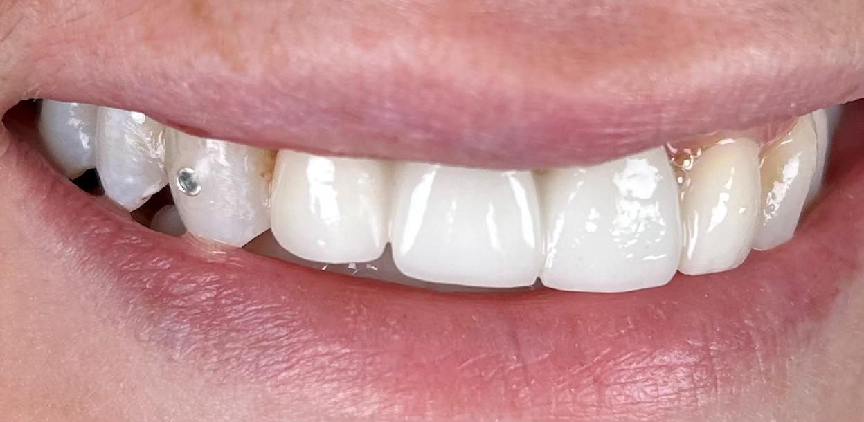 Whether you’re looking for a bold statement or subtle sparkle, our premium quality gems add a touch of glamour to your teeth. Enhancing your smile is quick, non-invasive, and requires no drilling on the tooth. Tooth gems are a form of dental jewelry that are attached to the surface of the tooth. The gems are made of small crystals and are applied using a dental adhesive. The process of adhering the gem to the tooth involves specialized cleaning of the tooth surface, applying the dental adhesive, and carefully placing the gem onto the tooth. The adhesive is safe for dental use and is designed to last, but can also be easily removed without causing damage to the tooth’s enamel.